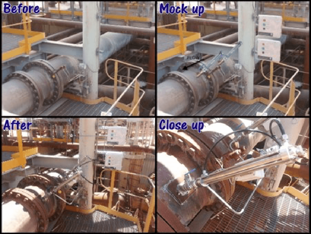 Before any personnel could enter the environment where the tapping point was located, it was essential that the affected unit be either placed in bypass or totally isolated. Instrument Technicians could not rod into a live stream without risking their lives. The time from initial notification of a blocked tapping point through to assembling required personnel and tools, then executing the rodding out task, could take anywhere between 2- 12 hours – a considerable amount of lost production time.